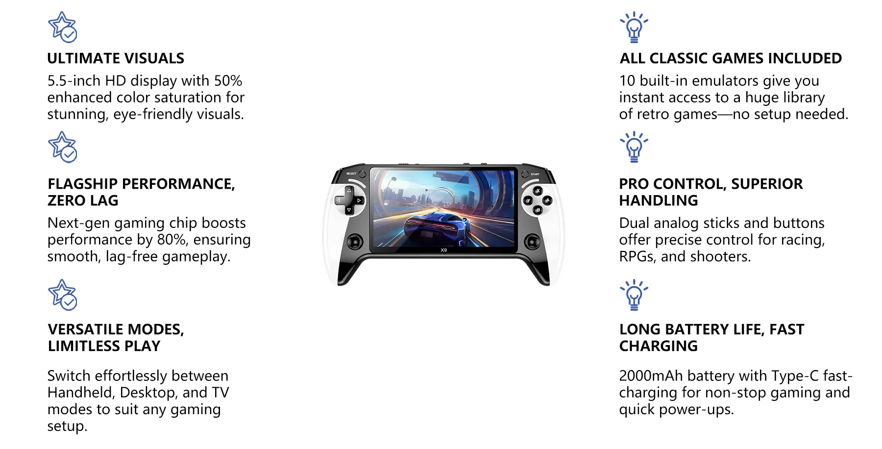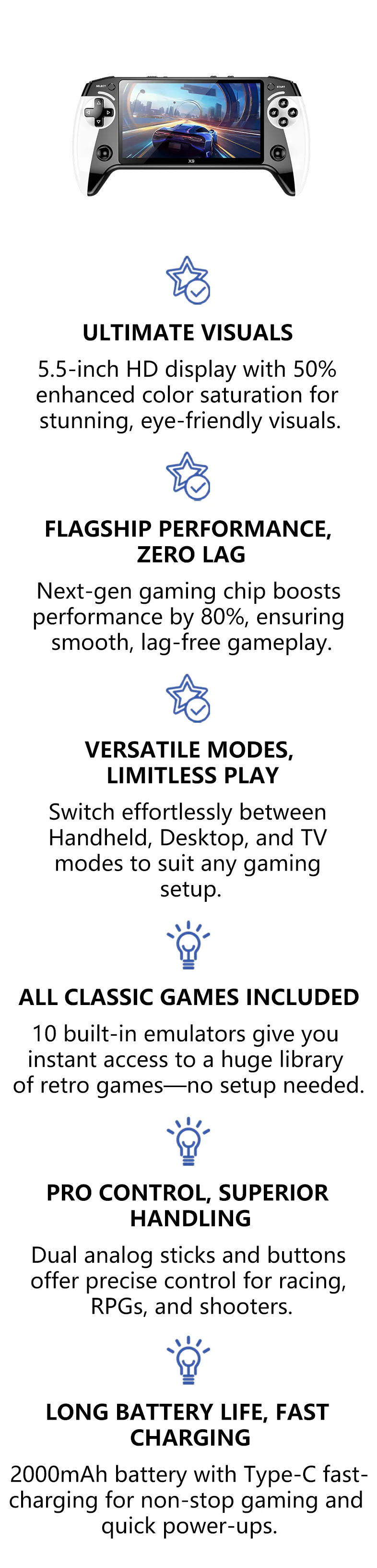 • Wireless Controller Connection - Bluetooth connectivity with no need for cables, providing a lag-free and flexible gaming experience.